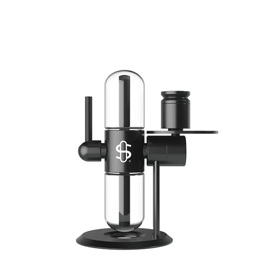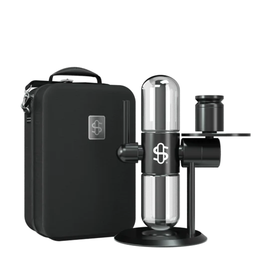 Fabricado en vidrio de borosilicato y aluminio anodizado, utiliza energía cinética, agua en cascada y flujo de aire contrarrotante para generar un vapor suave, denso y constante.Con sus 30 cm de altura, es compacto, práctico y totalmente portátil. Incluye un estuche de viaje premium con espacio para accesorios, cierre reforzado y correa de transporte.El Stündenglass Kompact combina diseño, ingeniería y portabilidad para brindar una experiencia única, elegante y eficiente en cualquier lugar.