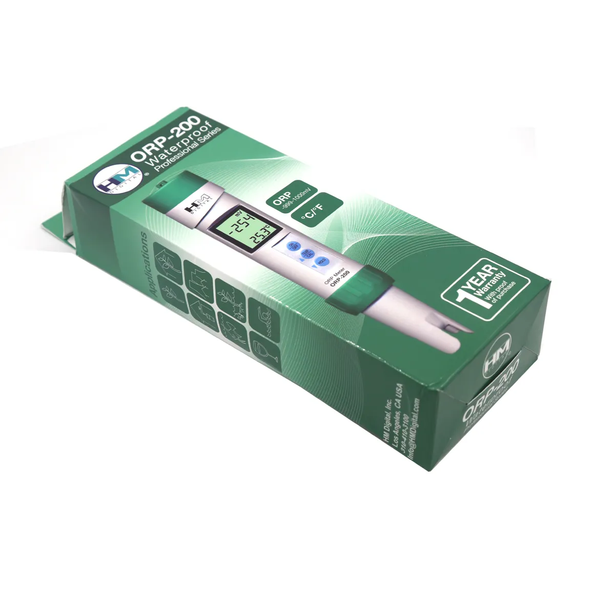 El ORP-200 es un medidor de ORP de calidad profesional, ideal para todo tipo de pruebas de ORP, incluyendo medición de antioxidantes, aplicaciones de purificación de agua, ionizadores, agricultura, acuarios y acuicultura, monitoreo de cloro, desinfección de torres de enfriamiento, análisis ambientales, lavado de frutas y verduras, hidroponía, acabado de metales, monitoreo de sistemas de ozono, aplicaciones farmacéuticas y médicas, piscinas y spas, blanqueo de pulpa, viñedos y bodegas, y tratamiento de aguas.